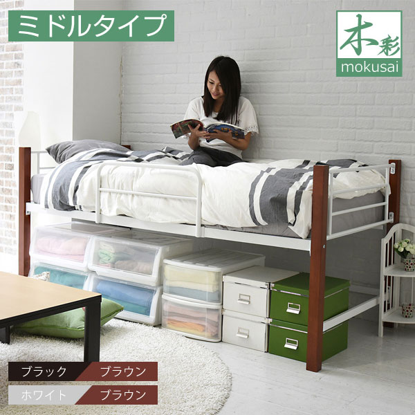 天然木脚 ミドルベッド シングル パイプベッド 高さ 96 長さ 209 木製 ロフトベッド ロータイプ 天然木 頑丈 丈夫 有効活用 新生活 極太 収納スペース 通気性 通販 楽天 収納スペース 通気性 通販 楽天