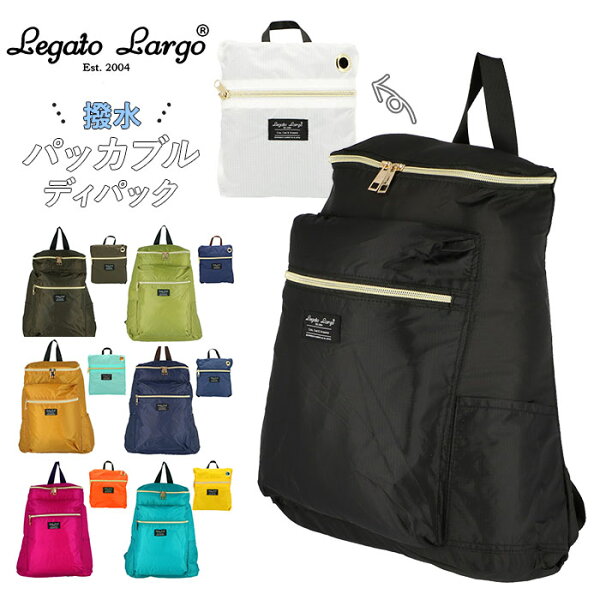 レガートラルゴ リュック ナイロン 通販 レディース おしゃれ 小さめ シンプル 通勤 通学 軽い 軽量 ブランド Legato Largo A4 メンズ 男女兼用 黒 無地 大人 かわいい 撥水 はっ水 コンパクト 折りたたみ 旅行 サブバッグ ポケッタブル 撥水加工ナイロン